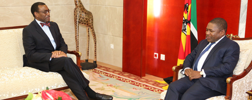 Adesina was also received by President Filipe Jacinto Nyusi. The Bank President applauded his efforts to increase the country’s economy and pledged to substantially increase the financial support of the Bank to the country, and to assist in the following areas: job creation for young people and the fight against floods and drought.