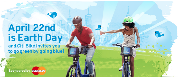 “We’re excited to be sponsoring the Citi Bike initiative to go green this Earth Day,” said Chris Reid, executive vice president, MasterCard. “Working with Citi Bike to not only enhance the consumer experience but also to demonstrate our support for environmental protection by promoting a car-free Earth Day is a true honor.”