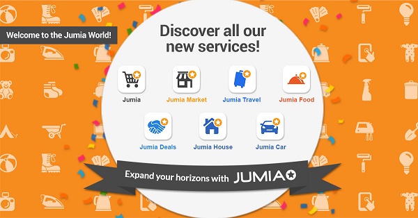 People can now find on Jumia all their needs ; branded products with Jumia, local sellers with Jumia Market (prev. Kaymu), hotel booking with Jumia Travel (Jovago), food delivery with Jumia Food (Hellofood), classifieds with Jumia Deals (Vendito), Jumia House (Lamudi) and Jumia Car (Carmudi), and lastly logistics services with Jumia Services (AIGX).