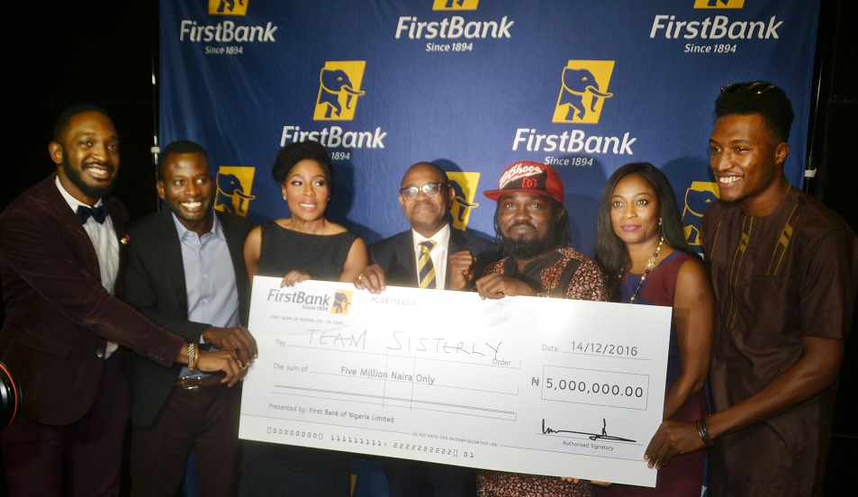 The finalists’ movies were premiered on December 14, 2016 at the Film House, Lekki Phase one and hosted by FirstBank and EbonyLife TV. It was a keenly contested exercise as both teams put up their best, showcasing their talents in directing, producing, art directing, script writing and acting to produce novel movies with insightful themes, suspense-filled plots rising to intense climaxes and strong resolutions. At the end of the two movies’ premiere, Team Sisterly was voted winner with 30 votes, beating Team It Takes Five which garnered 23 votes. A cheque of N5 million was presented to Team Sisterly by the Sponsor, First Bank of Nigeria Limited, represented by the Deputy Managing Director of the Bank, Gbenga Shobo.