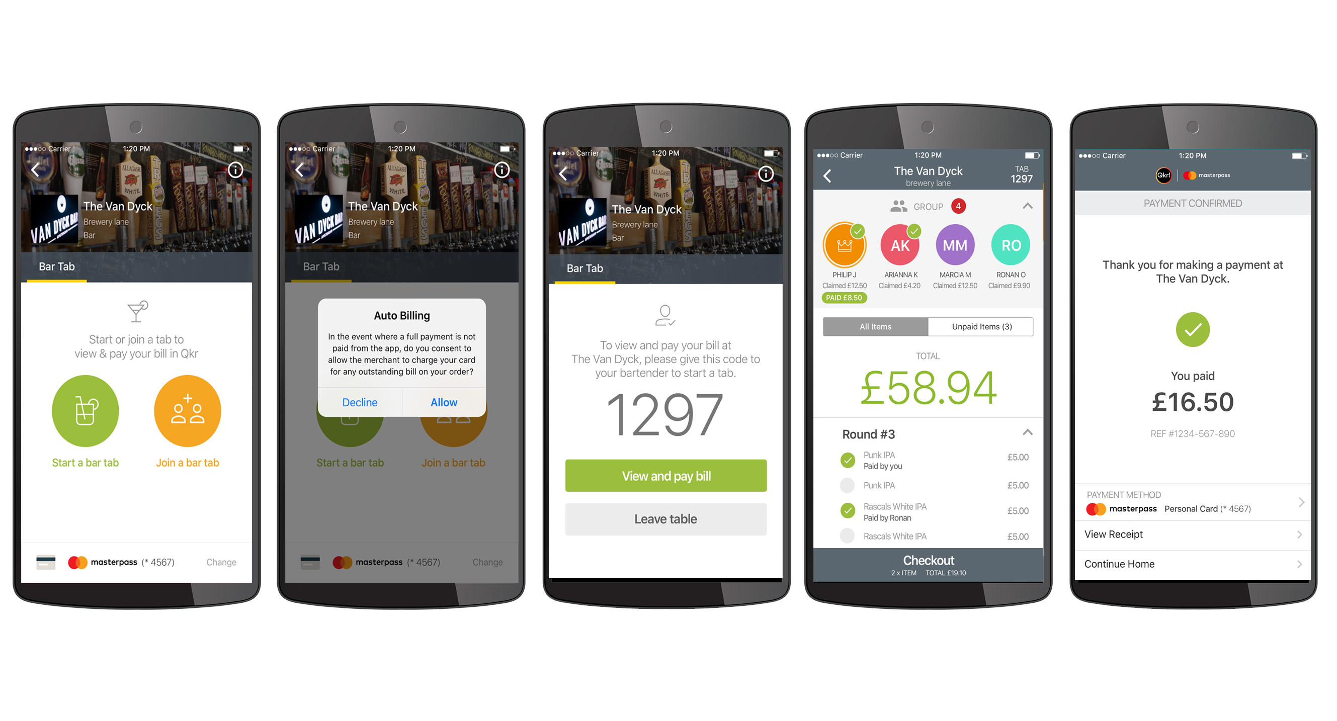 Mastercard is adding a new feature to Qkr called “Open Tab” that enables customers to open a tab at the bar without depositing a payment card or an identity document like a driver’s license with the bartender.