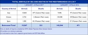 So far in 2017, 19,567 migrants arrived by sea to Italy and after the latest shipwreck this past weekend, 521 have died at sea – 50 more compared to the same period in 2016. The majority of these migrants are from Ivory Coast, Nigeria, Guinea, Senegal and Gambia – same as in 2016.