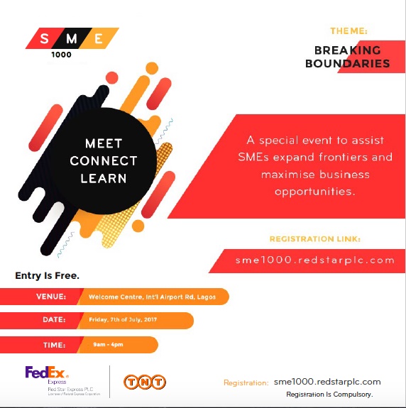 Tagged “Breaking Boundaries”, the event will be held on July 7 in Lagos at the Welcome Centre, International Airport Road. Apart from being a form of Corporate Social Responsibility for Red Star Express, SME1000 is a groundbreaking medium by the company to bridge the logistics gap faced by SMEs.