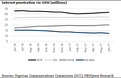 Internet penetration Posted by InvestAdvocate on August 22, 2017 More in : GTCO Launches “Take on Squad” Hackathon 3.0, Opens Call for Applications April 2, 2026 Nigerian Bourse Close Week Mildly Positive +0.4% on Bargain Hunting in Bellwether Counters April 2, 2026 NGXASI Inches Down to Close Flat at 201,698.89Pts on Losses in Blue Chips April 2, 2026