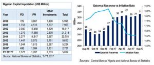 The monthon-month change in the Consumer Price Index (CPI) stood at 1.21% in July 2017, lower than 1.58% recorded in June 2017. Our forecast shows that the inflation rate will remain in the range of 15.5% – 16.2% for the remainder of 2017. With better policy initiatives and implementation, we believe the Nigerian economy can attract more foreign capital up to the levels attained in the year 2013.