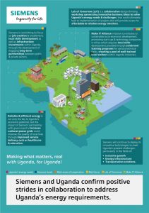 Siemens (www.Siemens.com) has made positive strides in collaboration with the Ugandan government and key stakeholders to identify opportunities to support some of the country’s immediate and long-term energy and infrastructure ambitions.
