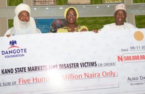 Aliko’s donation which came through the Aliko Dangote Foundation, was in response to the appeal by the Kano state government for contributions from public spirited individuals and corporate organizations to help the fire victims come back to business.