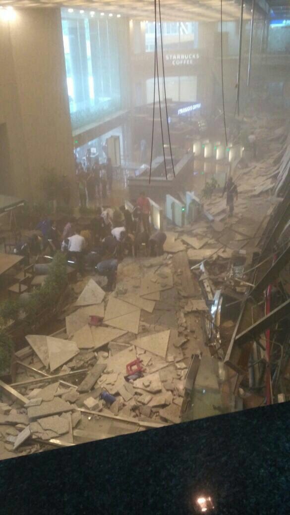 Images circulated on social media showed a mangled metal structure that had collapsed around a Starbucks cafe near the entrance to the multi-storey building.