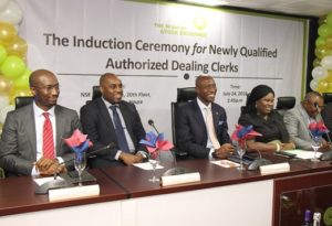 Your induction today is a testament to your years of dedication and hard work. It also marks the beginning of your journey as Authorized Dealing Clerks of The Nigerian Stock Exchange. With the extremely thorough and strict process leading to your qualification, I make bold to say that you are worthy to be practicing stockbrokers enabled to trade on any floor of The Nigerian Stock Exchange in Nigeria. I therefore welcome you all to a new relationship which faces inward – for Professionalism, Integrity, Transparency and Reliability; and outward – for Excellent Service to our investor and issuer communities.