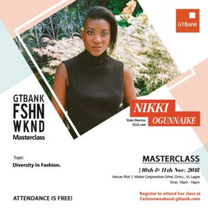 Nikki will be at the GTBank Fashion Weekend to discuss Diversity in Fashion.