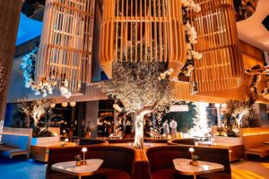 With captivating interiors, the scenic area incorporates light woods, verdant greenery and memorable flashes of gold. Before entering the sophisticated dining room, the scene is set, simulating an art exhibition as guests arrive through an intriguing passageway including artwork from the well-known Turkish talent, Haydar Ekinek.