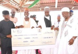 Vice President Professor Yemi Osinbajo who was in Jigawa for the launch of “Market Moni” presented the Unity Bank Cheque through the Chairman, Jigawa State Chamber of Commerce Mines and Agriculture (JICCIMA), Alhaji Shehu Muhammad Sunusi.
