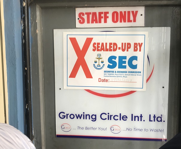 The Securities and Exchange Commission, SEC, has sealed off the premises of Growing Circle in Lagos for engaging in illegal fund management activities.