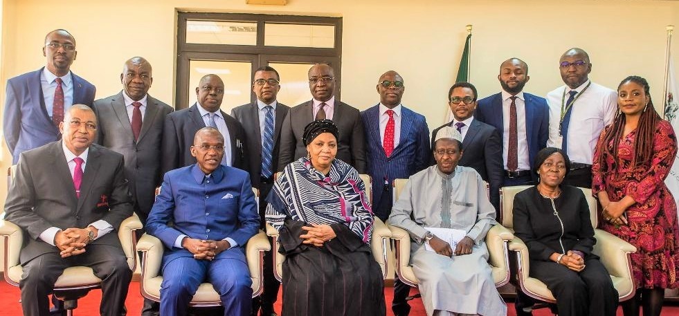 Sitting L-R: Hon. Justice Adamu Jauro of the Court of Appeal; Mr. Ahmed Kuru, Managing Director/Chief Executive Officer, Asset Management Corporation of Nigeria (AMCON); Hon. Justice Zainab Bulkachuwa CFR, Nigeria’s President of the Court of Appeal; Hon. Justice A.D. Yahaya as well as Hon. Justice T.A. Wilson. Standing L-R: Hon. Justice Idris Buba; Hon. Justice S.J. Adah; Hon. Justice P.O. Ige; Mr Albert Nwanozie, Head, Legal Department, AMCON; Hon. Justice E. Agim; Mr Joshua Ikioda, Group Head, Resolution Strategy, AMCON; Mr Jude Nwauzor, Head, Corporate Communications Department, AMCON; Mr Godson Isia, Legal Officer, AMCON; Mr Mohammed Yusuf, AMCON MD’s Technical Assistant and Mrs. Vivienne Talsma, Inter-Governmental Department, AMCON when the Management of AMCON paid a strategic visit to the President of the Court of Appeal to discuss the 2019 AMCON Amended Act in Abuja…recently