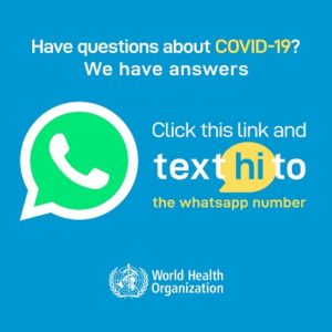 WHO (www.WHO.int) has launched a messaging service with partners WhatsApp and Facebook to keep people safe from coronavirus.