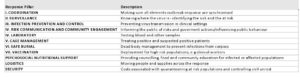 Given that Ebola is considered the most complex of responses within the O&E programme, the categories required for response are outlined below. These are expected to be costed through the O&E Response cost model on the basis of the number of infections. This same framework could be adapted for other diseases like COVID-19. Many items within the costing methodology would not need to be changed but would require expert review.
