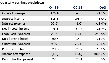 - Non-interest income (+20.5% YoY) grew in FY’19, supported by higher fees and commission income (+11.2% YoY) and a 17.8x increase in fair value gains on financial instruments