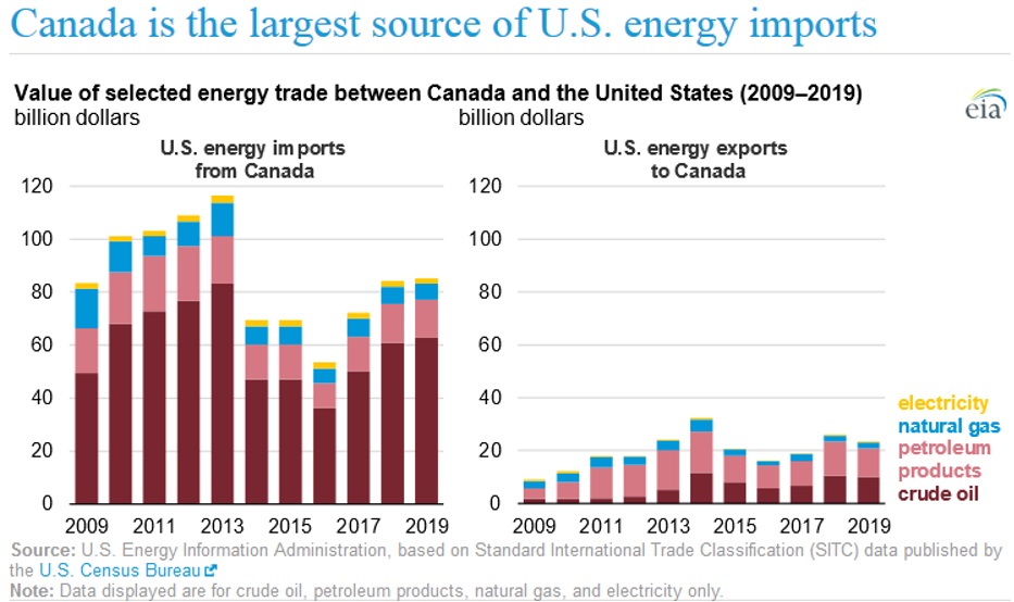 – Canada is the largest source of U.S. energy imports and the second-largest destination for U.S. energy exports.
