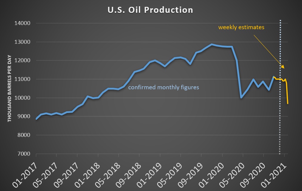 Texas gas production fell by half. Natural gas production in Texas collapsed by half during the freeze.