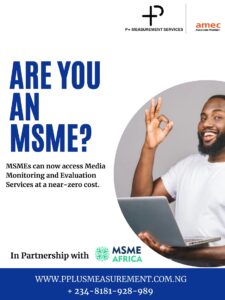 Nigeria’s leading and foremost media intelligence agency, P+ Measurement Services partners Africa’s leading Opportunities and Resource Platform for Micro, Small and Medium Enterprises, MSME Africa to launch a tailored Media Monitoring and Evaluation Services for MSMEs in Nigeria.