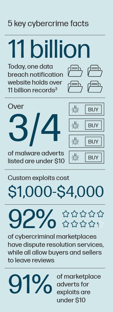 The HP Wolf Security threat team worked with Forensic Pathways, a leading group of global forensic professionals, on a three-month dark web investigation, scraping and analysing over 35 million cybercriminal marketplaces and forum posts to understand how cybercriminals operate, gain trust, and build reputation.