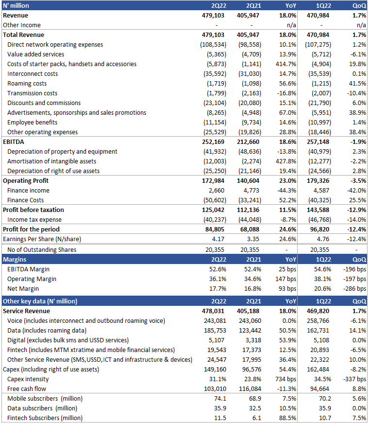 MTN Nigeria Earnings Highlights 2Q22