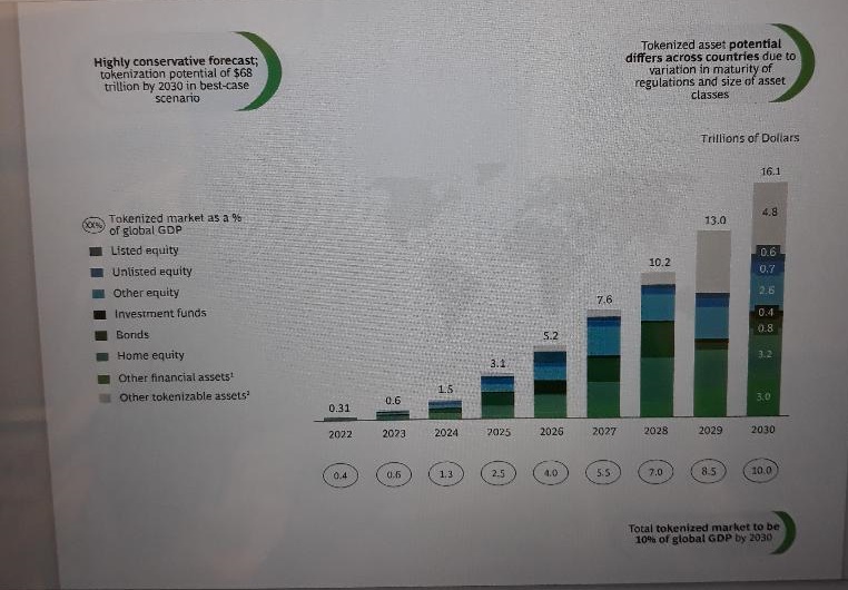 ——-Favorable stakeholder sentiment, recognition among monetary authorities could boost the share of tokenized assets to 10% of global GDP by end of decade