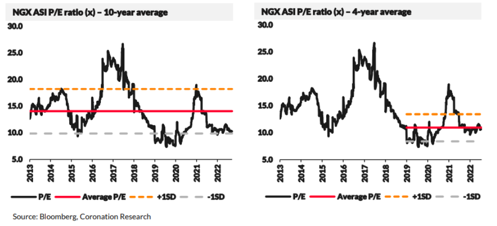Consequently, the valuation of Nigerian equities has come-off from its recent peak, following the ongoing market correction and a 44% improvement in earnings this year. Currently, the NGX ASI is trading at a price-to-earnings (PE) multiple of 10.1x, moderating from its 2022 high of 11.6x.