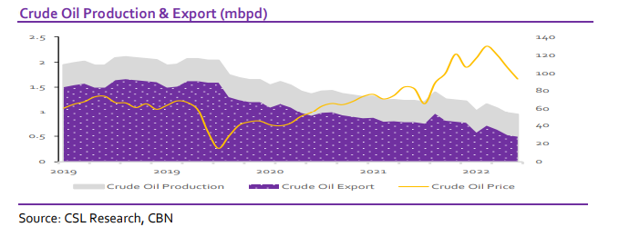 For non-oil revenue, we believe that the targets particularly on VAT and CIT collections are achievable. We are optimistic on the revenue from CIT payments, given our positive outlook for improved companies’ profitability in the year, which translates to higher tax payments. Meanwhile, according to the chief executive of the Nigerian National Petroleum Company Limited, Mele Kyari, the recent resumption of operations at the Forcados terminal and the 180,000 barrel per day Trans[1]Niger Pipeline will add half a million barrels to daily output by the end of November 2022.