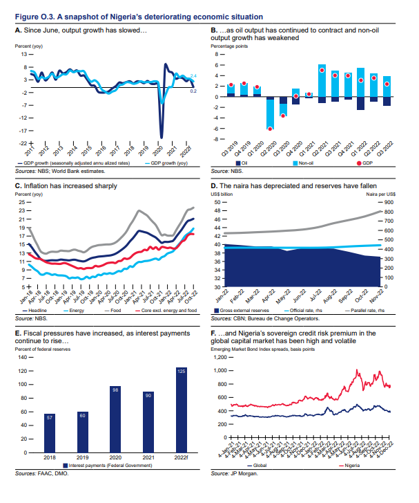 Nigeria’s economic performance has weakened since the previous Nigeria Development Update (NDU) was published in June 2022 under the title of “The Continuing Urgency of Business Unusual”.