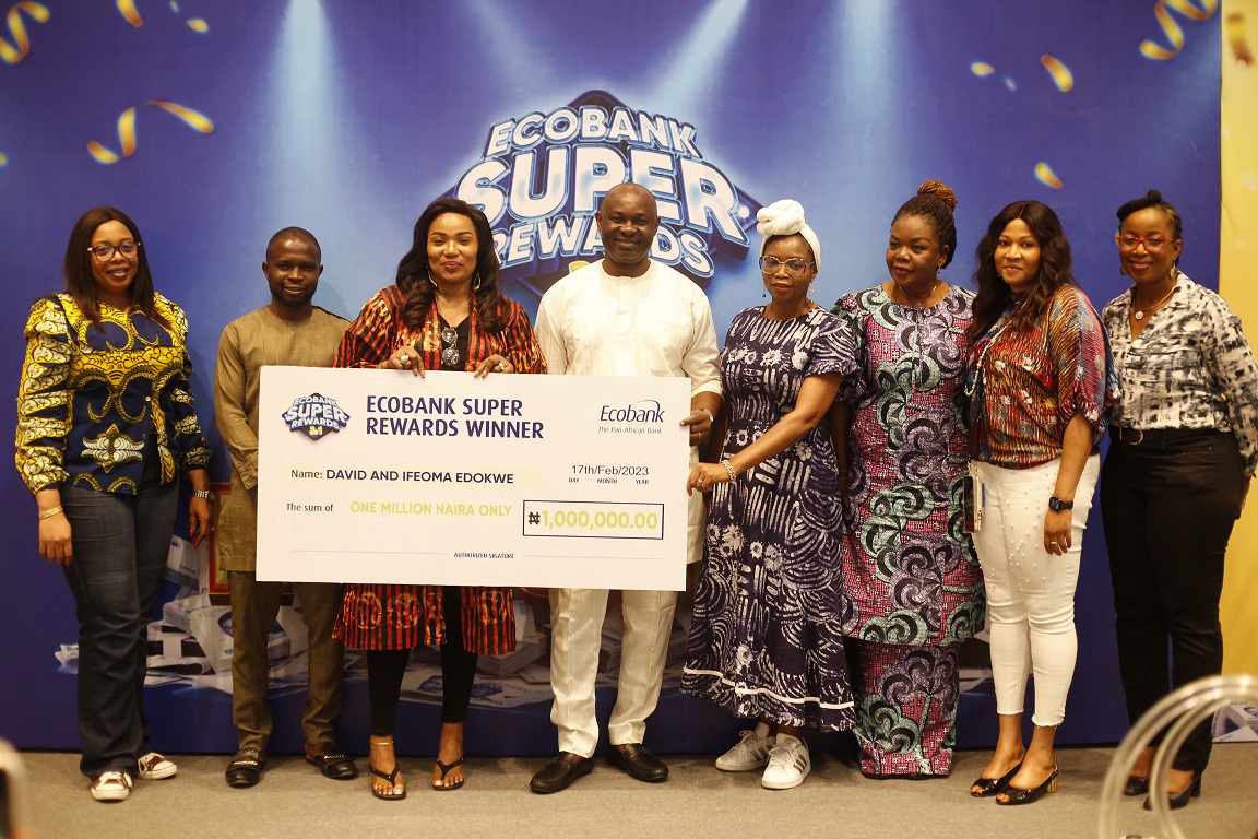 Ecobank Nigeria Limited, a subsidiary of Ecobank Transnational Incorporated (ETI), has rewarded four customers, being winners in the Super Rewards deposit promo ,with N1 million each. The Super Rewards Campaign is a customer-focused initiative designed by Ecobank Nigeria to reward customers’ loyalty and consistent use of the bank’s electronic payment platforms. This edition of Super Reward campaign, tagged, ‘Season 3.1,’ rewarded 100 customers monthly since November, 2022 with cash prizes of N50,000, while four customers won N1 million each at the end of the three-month campaign which ran between November 2022 to January 2023. The four winners are Mr John Sokeipiriala, Ahmed Said, Onashile Obafemi, and a couple with a joint account, Mr David Edokwe and Mrs Ifeoma Edokwe. Speaking at the cheque presentation in Lagos, Head, Consumer Banking, Ecobank Nigeria, Mrs Korede Adeniyi, said the scheme was introduced by the bank to reward customers’ loyalty, adding that it was also to promote the use of its electronic payment channels that offered convenient banking.