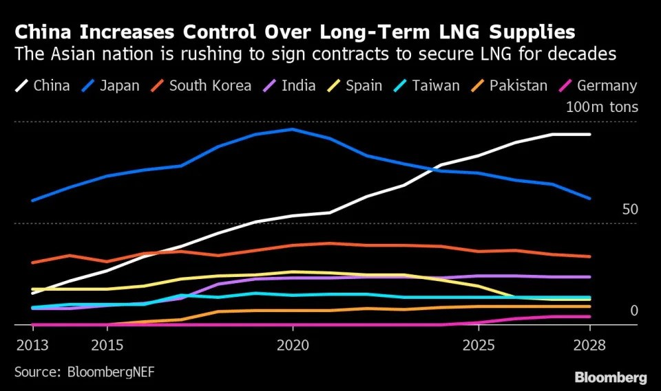 – China has become the single most important buyer of LNG supplied under long-term agreements, increasingly becoming a crucial intermediary in trading cargoes of liquefied natural gas.