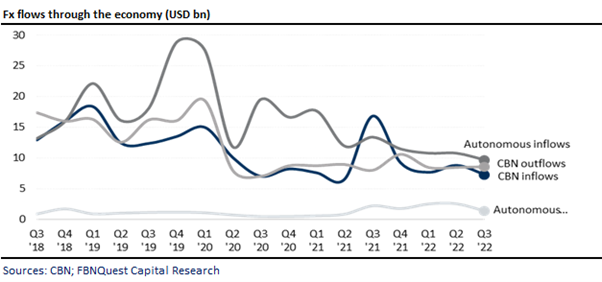 However, we see from the CBN’s latest monthly report for Q3 ’22 that the lower fx inflow through the central bank was mostly driven by lower receipts from non-oil sources.