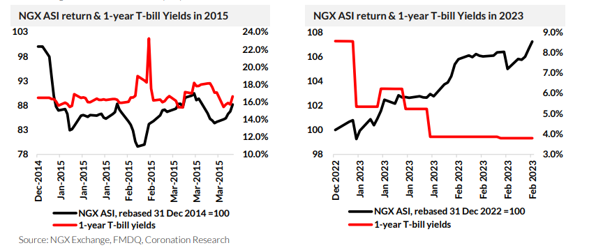 The equity market in 2023 differs from that of 2015. In January, we highlighted in our investment strategy outlook (see: Coronation Research, Better times in 2023, 11 January 2023) that the impending 2023 General Elections could affect the market similarly to how they did in 2015. Back then, the elections involved high levels of uncertainty as the newly emerging All Progressives Congress (APC) threatened the long-standing Peoples Democratic Party (PDP). Similarly, with three major parties (APC, PDP, and the Nigeria Labour Party) vying for the presidency in 2023, it’s hard to predict the outcome, and this could drive a risk-off sentiment in the equity market as it did in 2015.