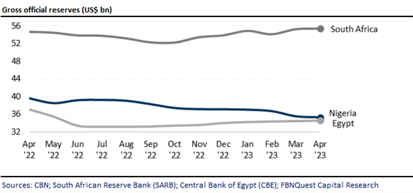 Conversely, the external reserves for South Africa and Egypt, the two other markets that we track across the continent, showed modest m/m increases in Apr ’23.