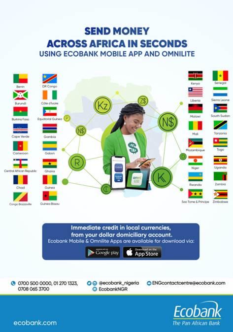 Ecobank customers can now transfer money in seconds to 33 African countries where Ecobank Group operates using Ecobank Mobile and Omnilite apps and the recipient gets immediate credit in the target country’s local currency. Announcing this new development in Lagos, Head, Consumer Banking, Ecobank Nigeria, Korede Demola- Adeniyi, said domiciliary account holders of the bank can easily send up to $10,000 dollars at a time without hindrance.