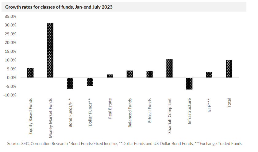 The only other class of fund to record significant growth were Shariah Compliant funds which grew by 10.5% during the first seven months of the year.