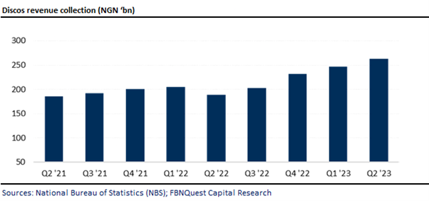 Further illustrating the point, total revenue collection by the Discos increased 40% y/y to NGN263bn in Q2 ’23. However, the data fails to show the total amount invoiced by the Discos. Notably, collections have consistently fallen far short of the invoiced amount. Historically, collection efficiency has consistently averaged around 70%.