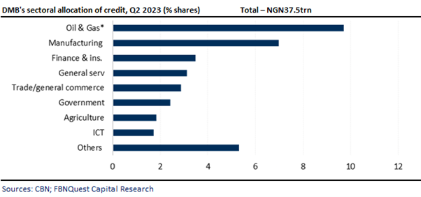 Consistent with the historical loan book allocation pattern, the oil and gas sector was the leading beneficiary of banks’ credit lending.