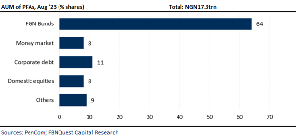 A major factor underscoring PFAs’ significant asset allocation to FGN bonds is the increased supply of FGN paper in the primary market due to a higher domestic funding target compared to last year.