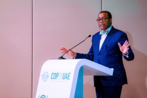 The President of the African Development Bank, Akinwumi Adesina, called on African business leaders to take advantage of investment opportunities in Africa and decarbonize their industries more quicky during the COP28 global climate conference in Dubai.