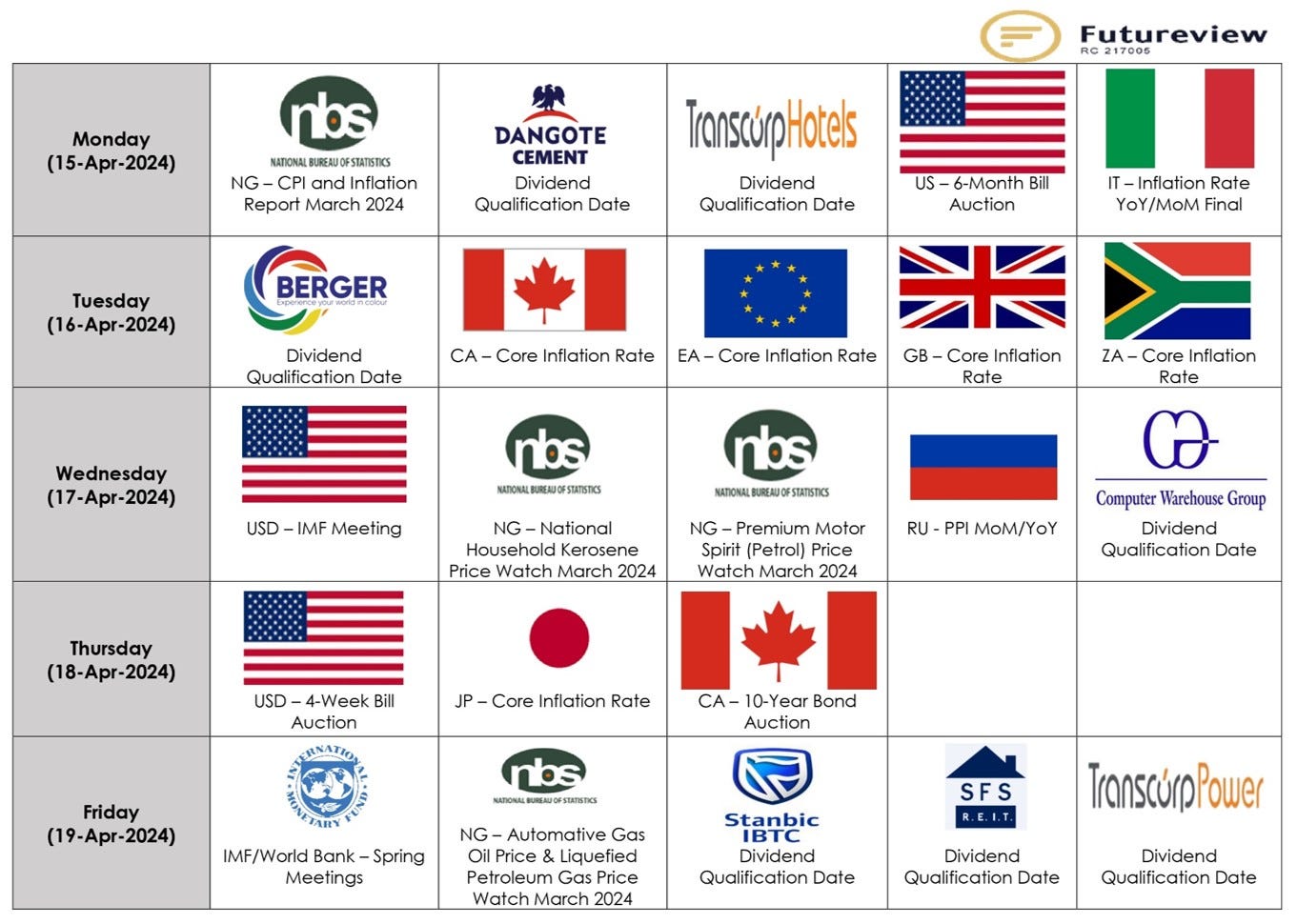 Also, see below the main events of the week from 15th – 19th April, 2024.