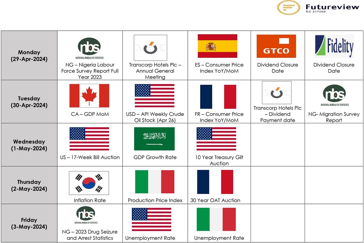 Also, see below the main events of the week from 30th April – 3rd May, 2024.