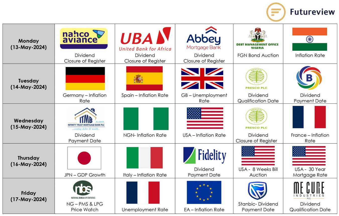 Also, see below the main events of the week from 13th – 17th May, 2024.