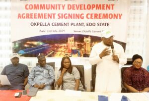 Management of Dangote Cement, Okpella has signed a development and social support agreement with its Okpella Edo state host communities in demonstration of its commitment to the development and overall well-being of host communities and their people, as a responsible corporate entity