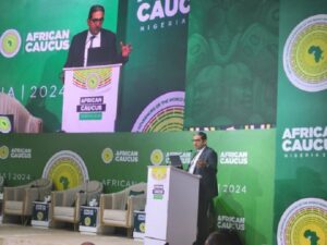 Mr. ElMaayergi was addressing participants and guests in Abuja at the African Caucus Meeting of the World Bank Group and the International Monetary Fund (IMF), from August 1 – 3, 2024 where he represented Prof. Benedict Oramah, President and Chairman of the Board of Directors of Afreximbank. Attended mainly by ministers of finance and Central Bank Governors from across Africa, the meeting had the theme “Facilitating Intra-African Trade: Catalyst for Sustainable Development in Africa”, and was aimed at identifying key challenges facing Africa in achieving full integration and at engaging in strategic dialogues to engender sustainable solutions.