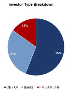 In terms of investor type, the high-quality order book was predominantly allocated to Central Banks & Official Institutions (56%), Bank Treasuries (29%) and Fund Managers/Asset Managers/Hedge Funds (15%).