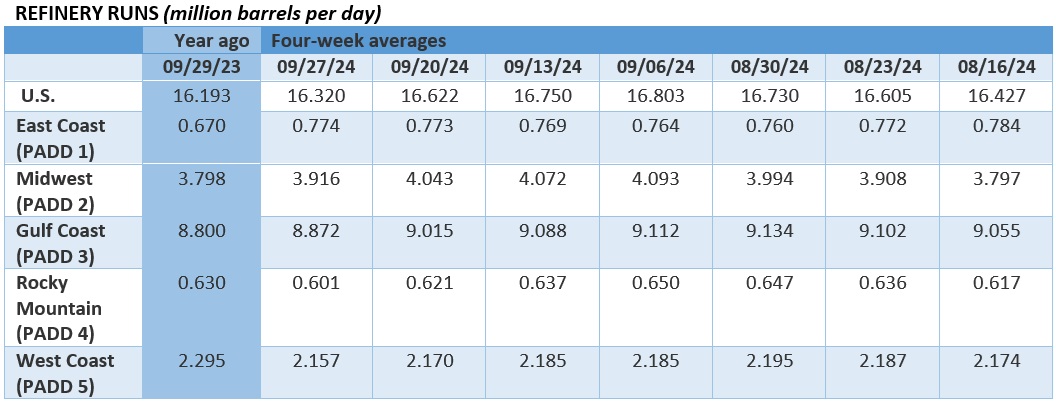 Venezuela’s Exports Dip Lower on Outages. Venezuela’s crude and fuel oil exports declined 9% month-over-month in September, as two large electricity blackouts and equipment outages hindered normal operations, seeing outflows dip to 842,600 b/d, of which 212,000 b/d was lifted by US major Chevron.