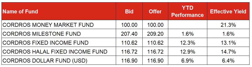 Kindly see below our Mutual Fund prices and returns as of today.