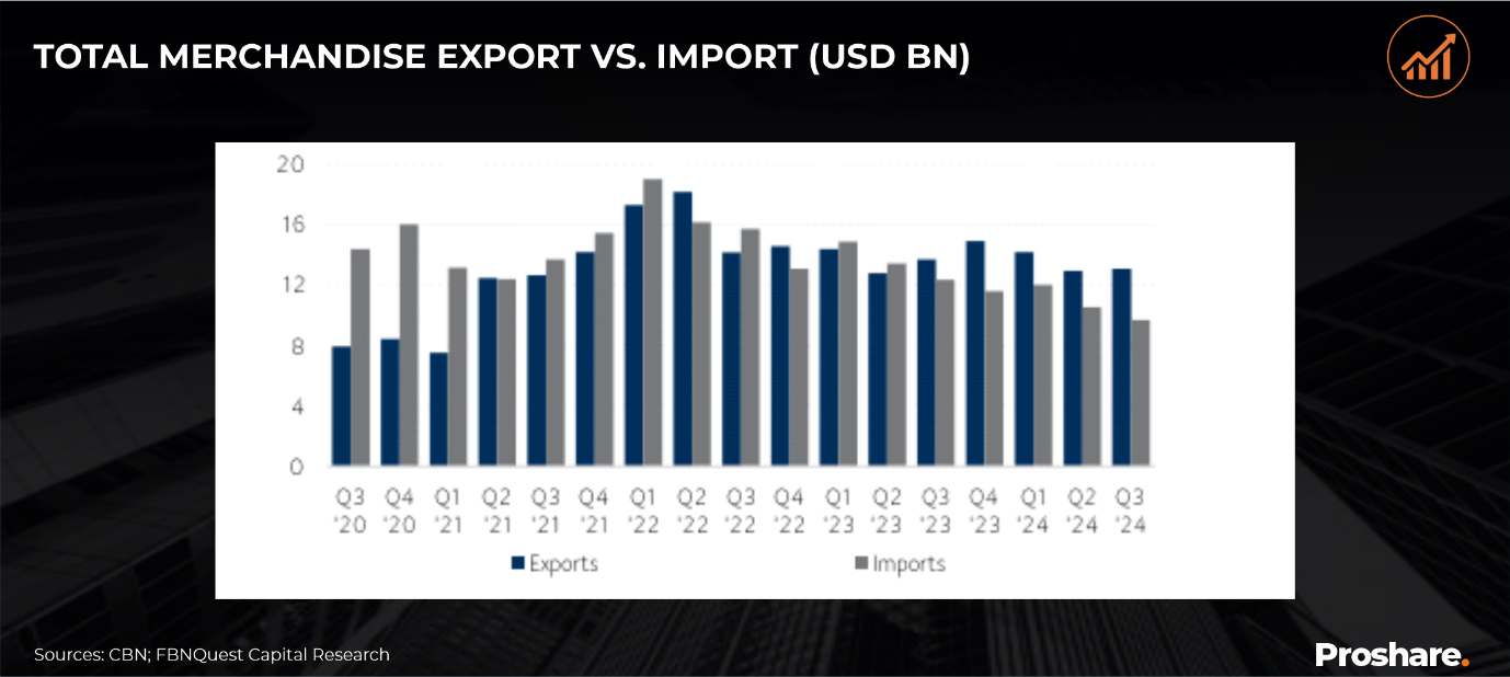 - Looking ahead, analysts at FBNQuest anticipate a sustained trade surplus driven by increased refining capacity and subdued import demand.